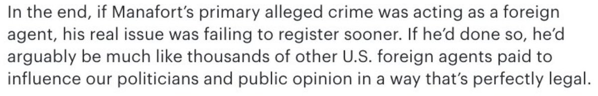 The question that’s been running through my mind...how did the Podesta’s know that they needed to amend their FARA returns, but Manafort didn’t. Did the Podesta’s get a ‘heads up” ?