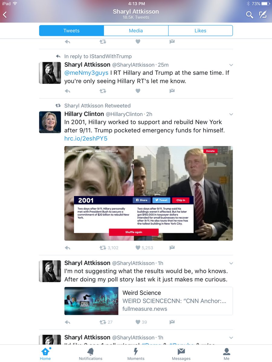 I did not see your retweet of Donald Trump, but I did see your HRC retweet.