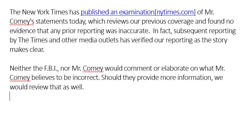 Nope, they are sticking by the story which strongly suggests to me that Comey was a big source for it to begin with