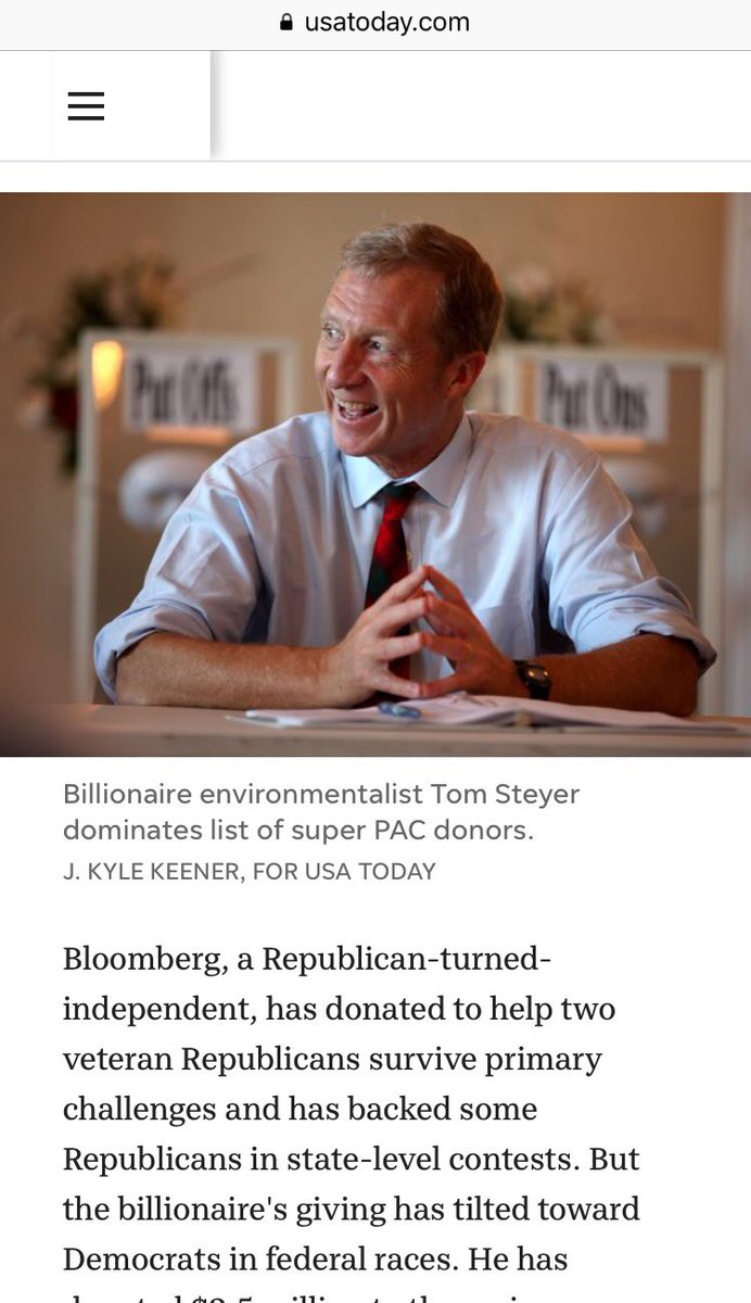 And topping the list of Super Pac donors.... Weird, right? https://www.usatoday.com/story/news/politics/2014/10/28/top-super-pac-donors-of-the-midterms-steyer-bloomber-singer-mercer/18060219/ …pic.twitter.com/xSaGprJjm8