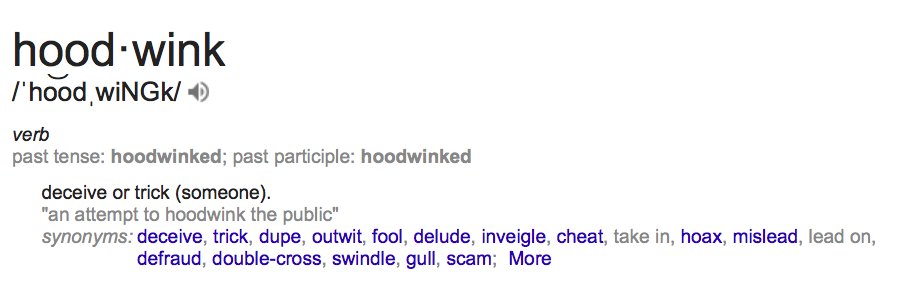 What a great word - "hoodwink". From the old custom of robbers and thieves to literally put a hood over their victims' eyes to make them wink" (close their eyes) to what was happening. The Brit version of Blind Man's Bluff used to be called "Hoodwink".