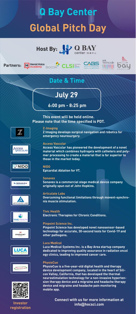 Last chance to register for the Global Pitch Day event. Scan the QR code to sign up
