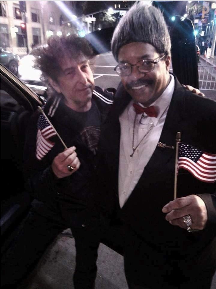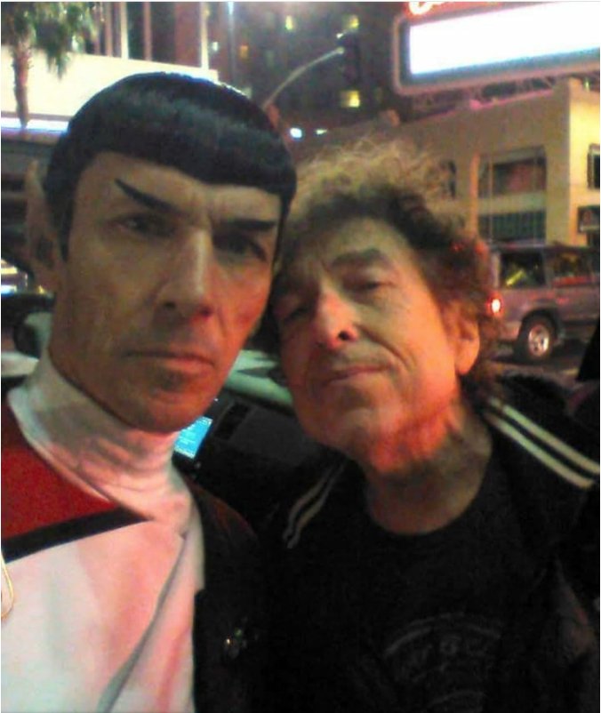Apparently Bob Dylan was driving down Hollywood Boulevard yesterday and he saw a Spock impersonator and a Don King impersonator and he stopped the car to get photos with thempic.twitter.com/7UDLuZDlD2
