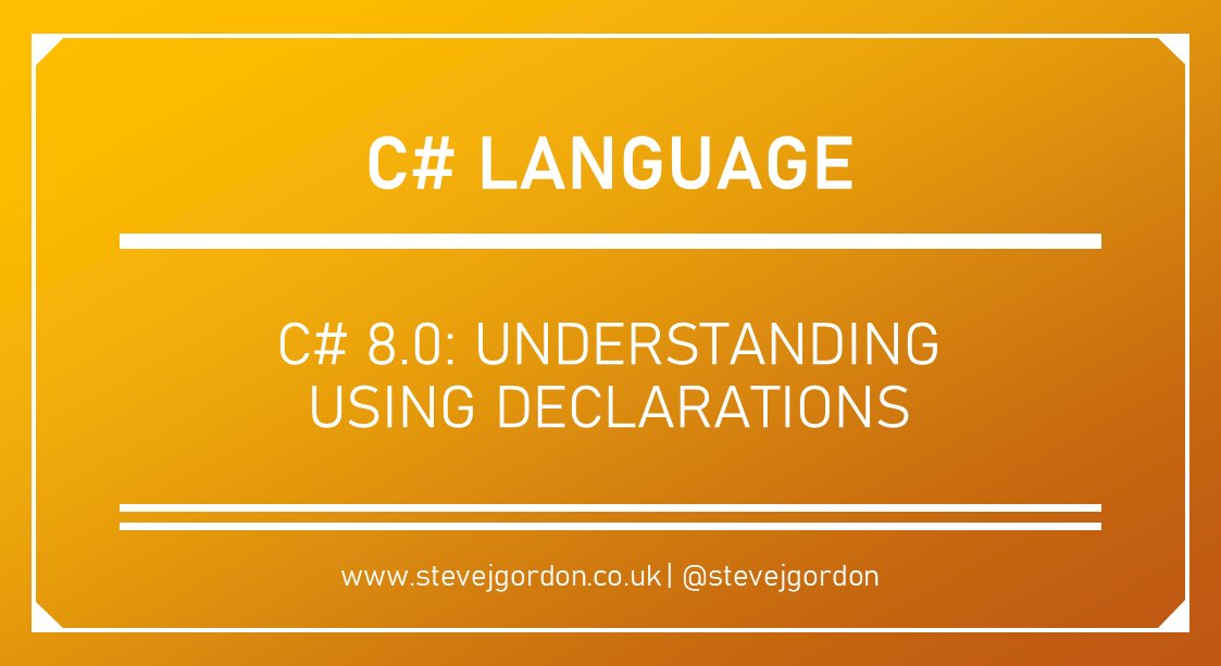 C# 8.0: Understanding Using Declarations - Steve Gordon https://shawnw.me/38jCp4S pic.twitter.com/mNbbCeynFn