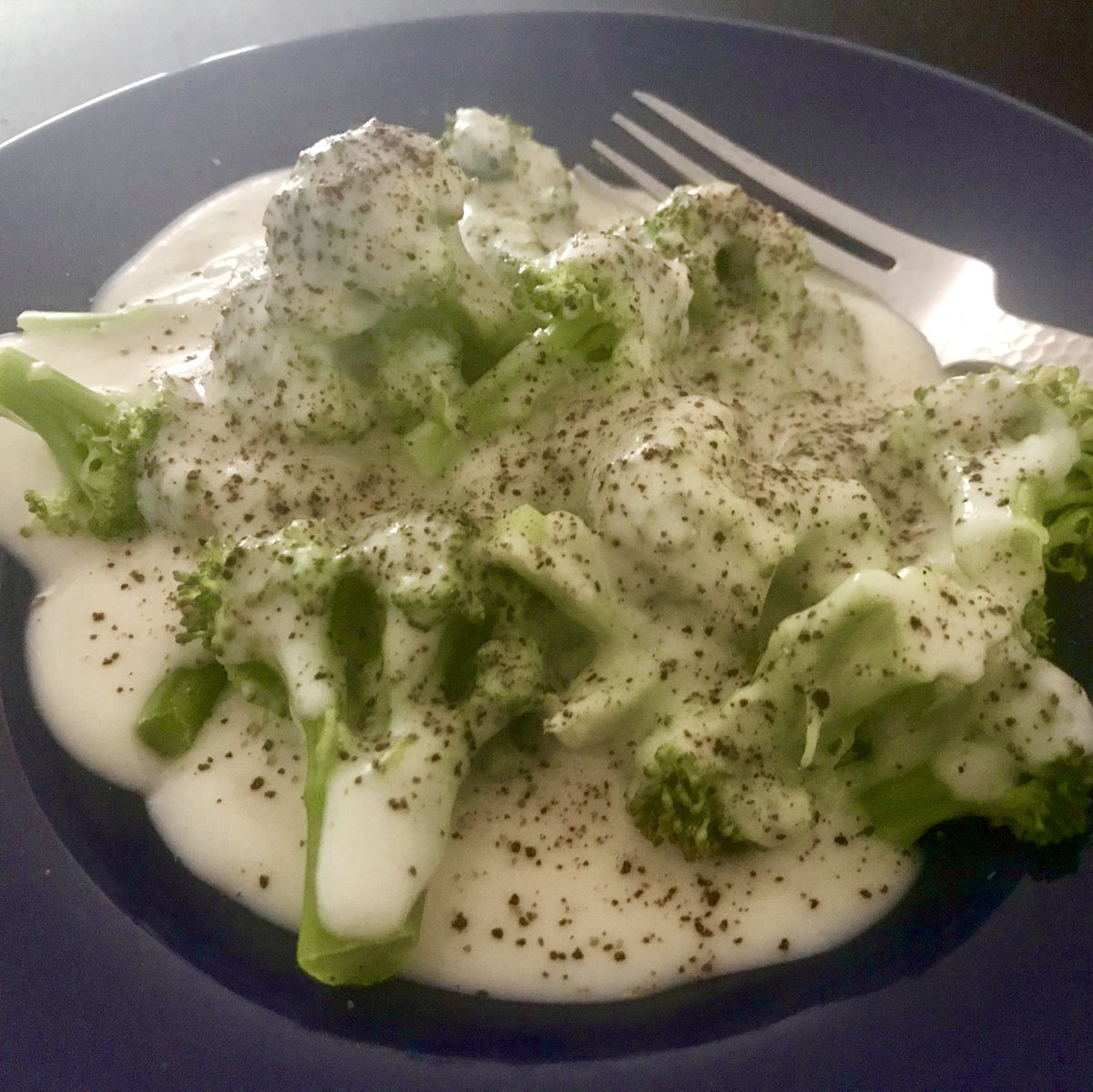 Simple Broccoli Alfredo with lots of pepper
