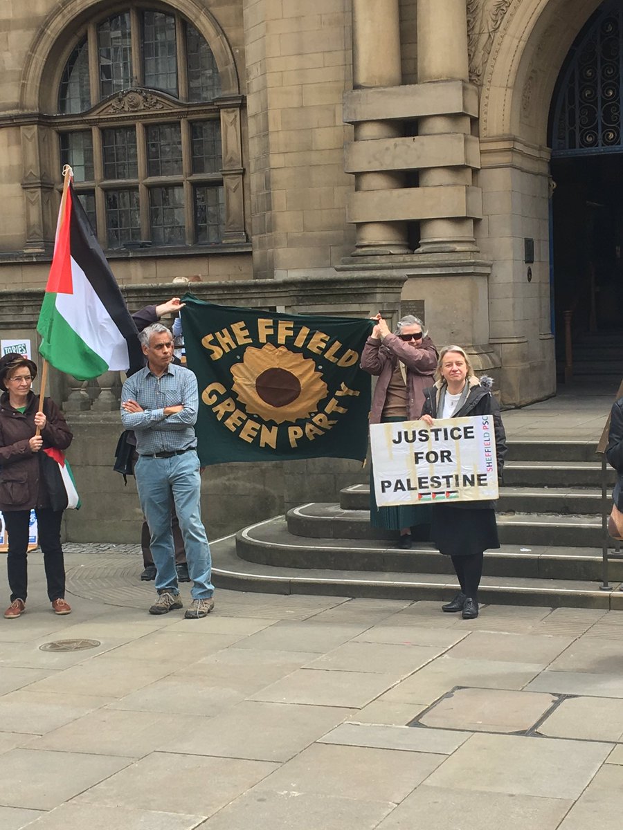 Sheffield Greens support Justice for Palestine. Natalie soon to speak at today's rally at Sheffield town hall.pic.twitter.com/6gvnIPwZOk