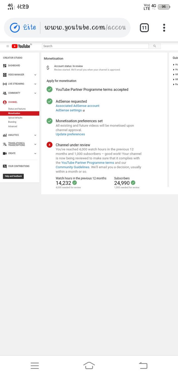 My channel is completed 1k subscribers and 4k watch hours in previous 365 days but my channel is still under review.