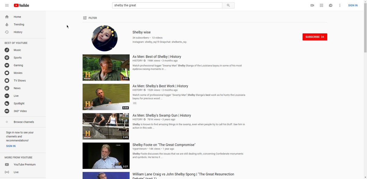 My channel is ShbeblyTheGreat, and new people often spell it with spaces or as "shelby the great" which is understandable. Searching on a clean YouTube page, this is what you get. And it just recently started showing 1 video from me. Here are some screenshots.pic.twitter.com/X2c8BiFdbG