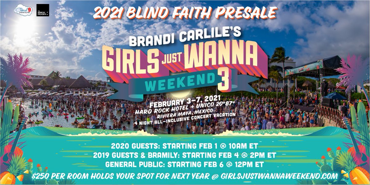 We love Girls Just Wanna Weekend so much we couldn’t wait to get home to share the news... We’re back in 2021! Join us February 3-7 as we take over Hard Rock Riviera Maya and sister resort, UNICO 20°87° for year three of our favorite vacation!pic.twitter.com/XMPHh4KiKp