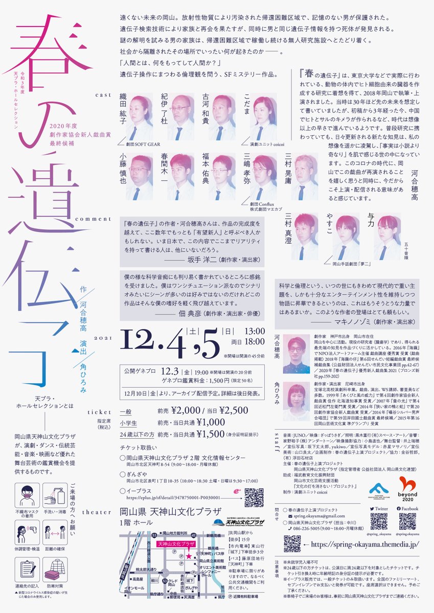 #春の遺伝子」いよいよ本日から!皆さまお見逃しなく♪ お席状況 12月 4日(土)13時×完売 4日(土)18時〇残席あり 5日(日)13時〇残席あり 5日(日)18時〇残席あり ※チケットご購入のお問合せは086-226-5005(9時~18時)天神山文化プラザまでpic.twitter.com/Sum9OCElFJ
