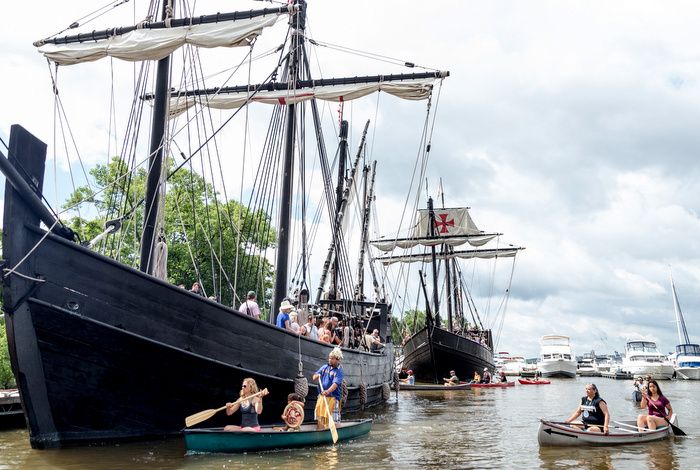 Christopher Columbus Replica Ships Confronted By Iroquois Canoeists http://buff.ly/2tChcyv pic.twitter.com/VAbLYRNaH5