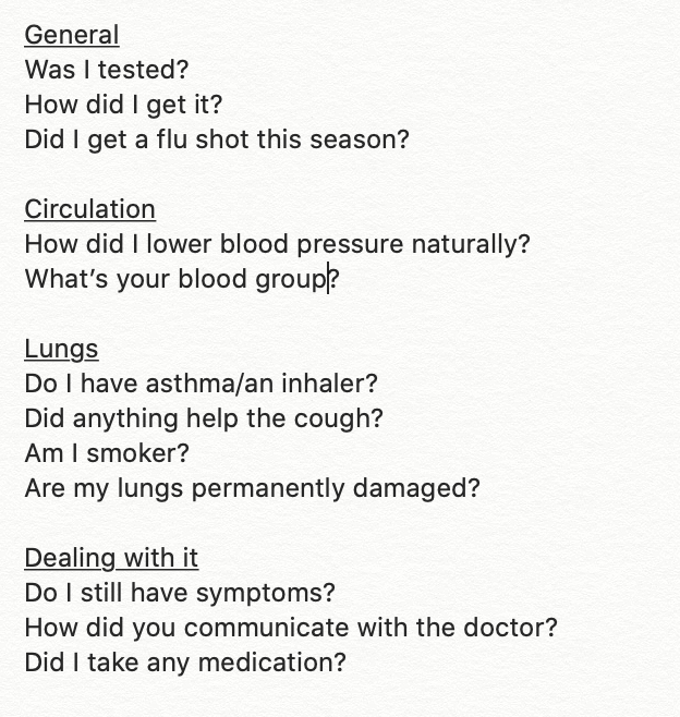 I recorded my symptoms and sent it to doctors (my friends). "Classic Covid" came the reply. I kept monitoring it and, frankly, staying awake was a struggle. I went to bed. My breathing remained severely impaired for another 2 days, but I was managing it all from home. 10/