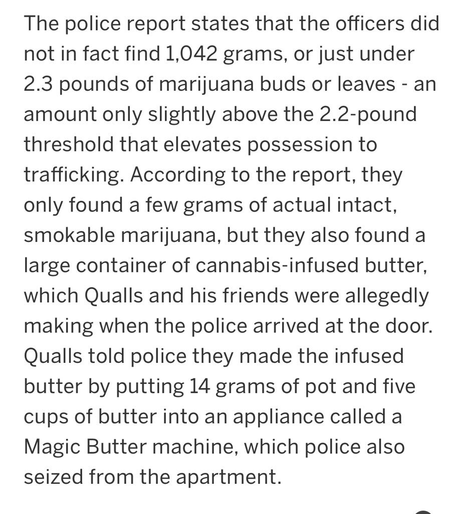 An Alabama man helped the local newspaper bust a sheriff for taking $750k intended for prison food. Four days later the guy got arrested for pot. Sheriff’s office included the weight of butter in his pot butter to bring drug trafficking charges. http://www.al.com/news/birmingham/index.ssf/2018/02/man_arrested_on_six_charges_fo.html …pic.twitter.com/JjZyA7Jm8A