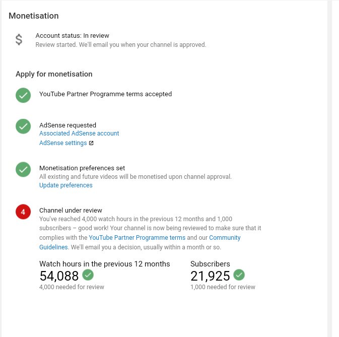 Thanks for the screenshots. So long as you meet the eligibility, you can expect to hear back in a month or so. All applications are manually reviewed, so it takes a bit of time. If it takes longer, it means your channel is being held for a second review. Appreciate your patience.