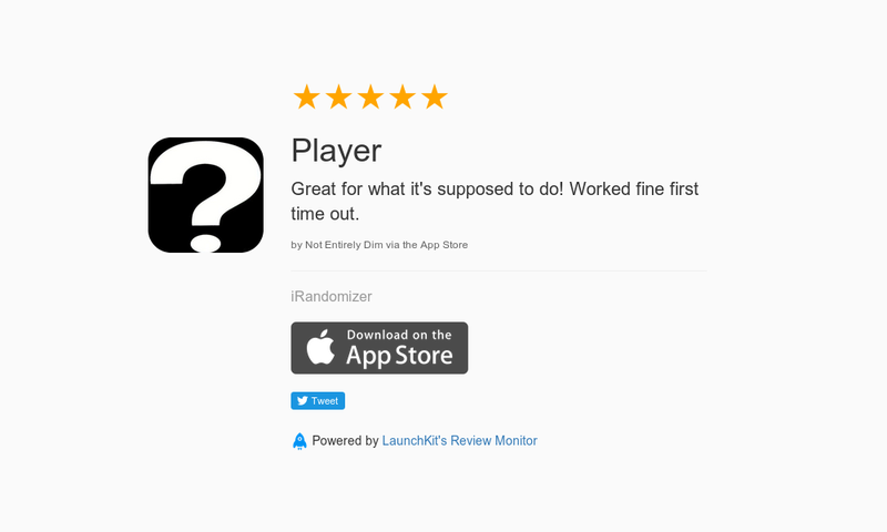 5 Star Review: "Player: Great for what it's supposed to do! Worked fine first time out." https://launchkit.io/reviews/q2dKbpnQeEI …pic.twitter.com/dKkIcit3UL