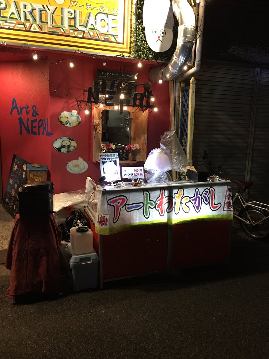 今日は急遽の決定で告知やらはでけんかったけど、塚口のレストランのArt & Nepalさんの軒先でアートわたがしを出店してきた。 ご来店くださりました皆々さんありがとうございました♪pic.twitter.com/TuSe8dLtgX