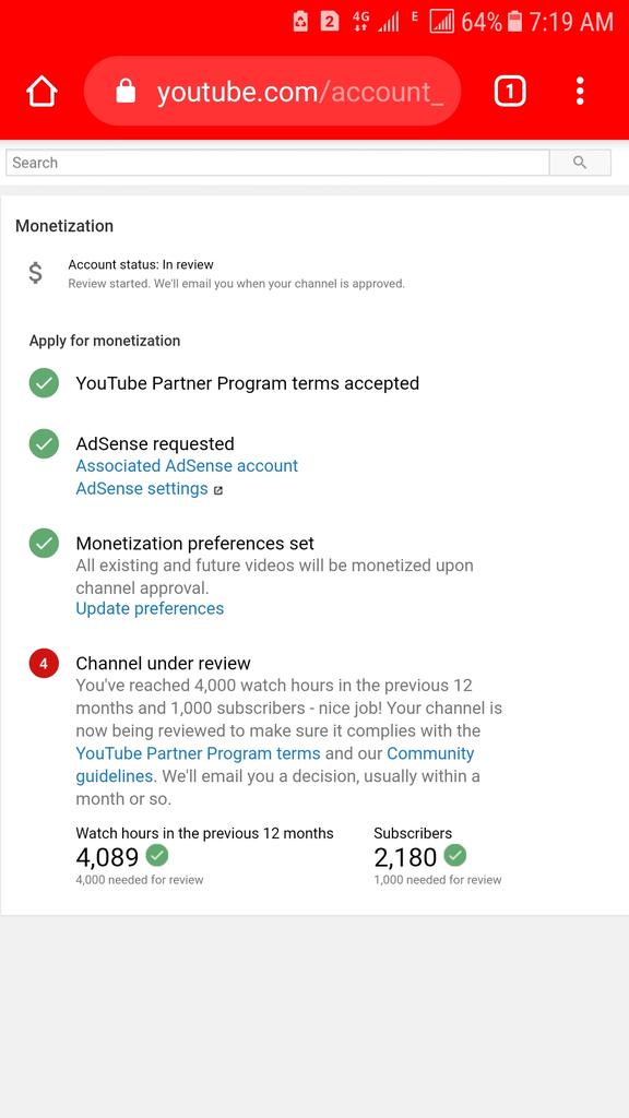 @TeamYouTube Dear Team Youtube I have already completed 4khours And 1k subscribers in previous 365 Days and my channel is under review till Some days. but monetization is not enable. plzz guide us... https://www.youtube.com/channel/UCfg5_2a0jf3N3CuRvtCL-wQ …pic.twitter.com/ZCzdmewKF0