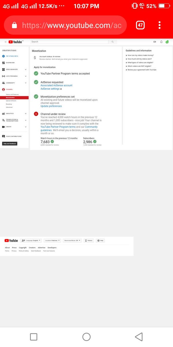 @TeamYouTube As I have already reached 4000 Watch hours and also completed my 1000 Subscribers. My request you to please review my channel and enable monetization as soon as possible. My channel name:Profit World. My channel Id: https://www.youtube.com/channel/UCzBs7uDRo88DXwl-6SYdWgg … Regards ' Shoaibpic.twitter.com/K2BJWPNH5R