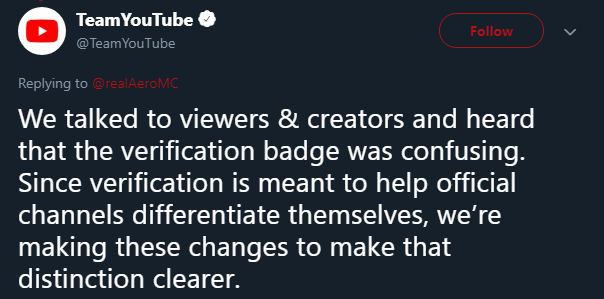 hmm, I wonder what that check is on your Twitter is, @TeamYoutube? I have noooooo clue? It's soooooo confusing..... frick this change. The background looks cool but at least keep the check.