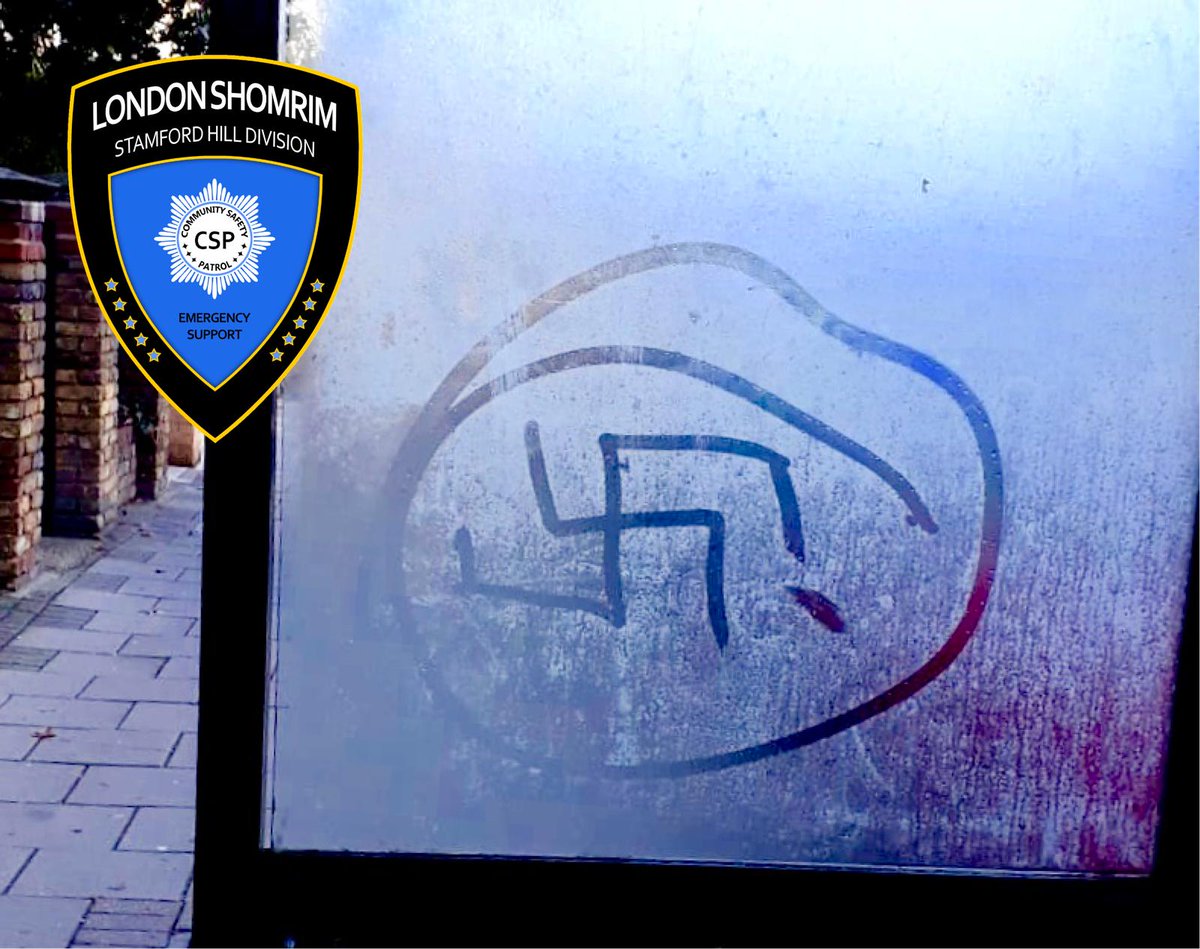 #Shomrim alerted@metpoliceuk after a member of the public called to report a#swastika on a bus stop in Manor Road#N16, if you’ve witnessed anything suspicious please call police on 101 quoting Ref: CAD2629 11/12/18pic.twitter.com/BoiW1cYUKP