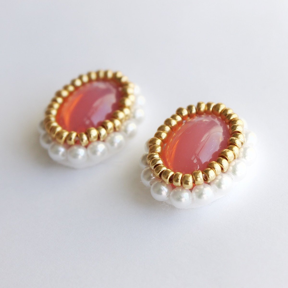 春らしい色のガラスカボションを見つけたので、一粒ビーズ刺繍シリーズに新色追加しました♡宜しければギャラリー覗いてみてください