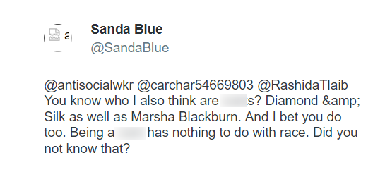 @SandaBlue was PERMANENTLY suspended for this tweet. Yes, she used a bad word; one used on Twitter about a billion times a day. Typically, you’re locked out & just delete it. Not this time. No appeal. PLEASE REFOLLOW at@SandaBlueDeuxpic.twitter.com/qIW8XpXsqg