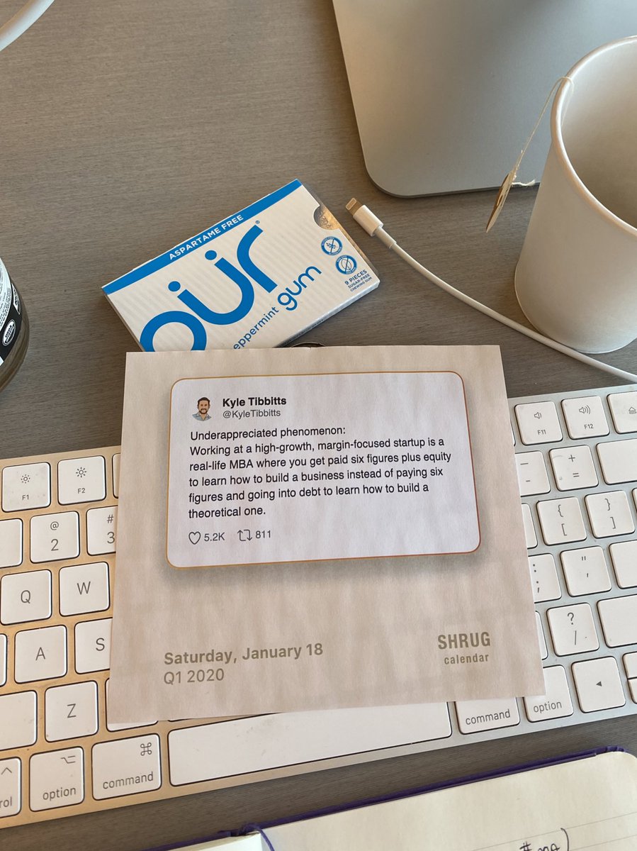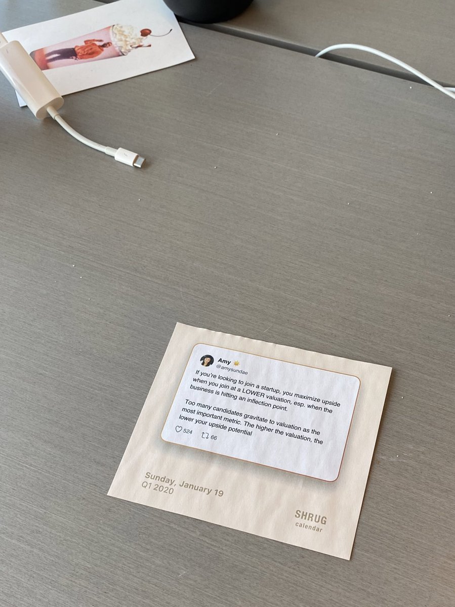 @ShrugCap calendar days and giving them to me as morning ‘you got this!” notes. Here’s to the next 337 days of VC/tech content embedding itself into my home!