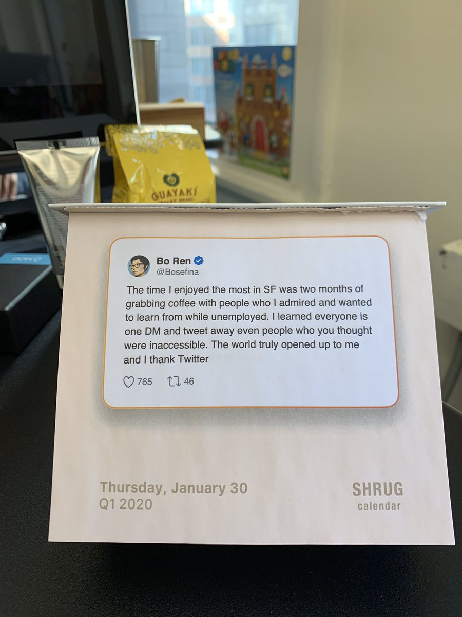 @ShrugCap calendar quotes on@anchor coworkers’ deskspic.twitter.com/QER7SjsMFC