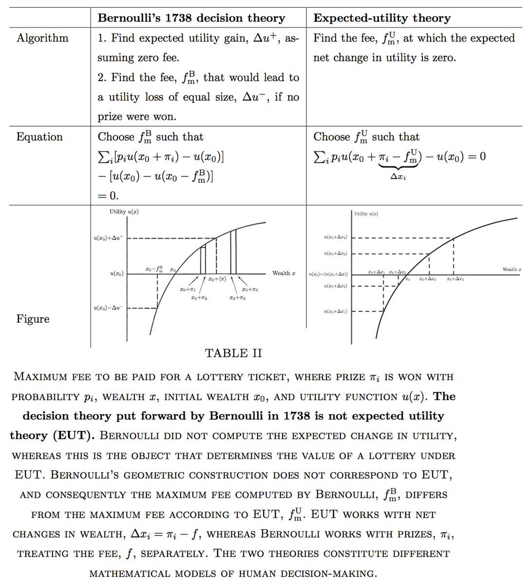 The difference between Bernoulli’s 1738 decision theory and expected-utility theory. This is one way of putting it. My impression is that the consequences of this (unknown) difference are very significant. Please share so we reach those who need to know about it.pic.twitter.com/wnqGMLMTmW