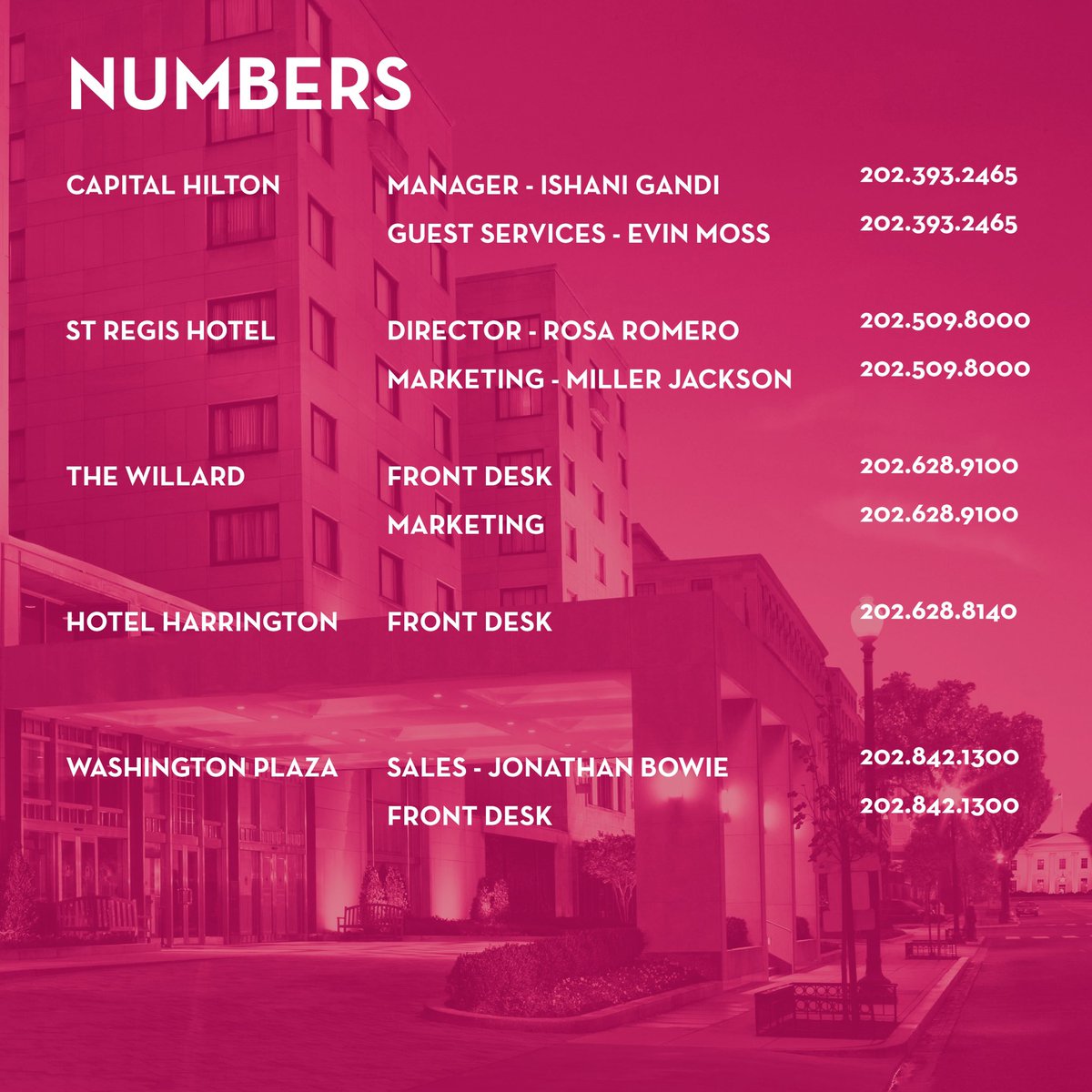 UPDATE: One of the main Trumpist groups is now telling their people to stay at the hotels listed on this graphic. Can you give these new hotels a call today? Same script as before.