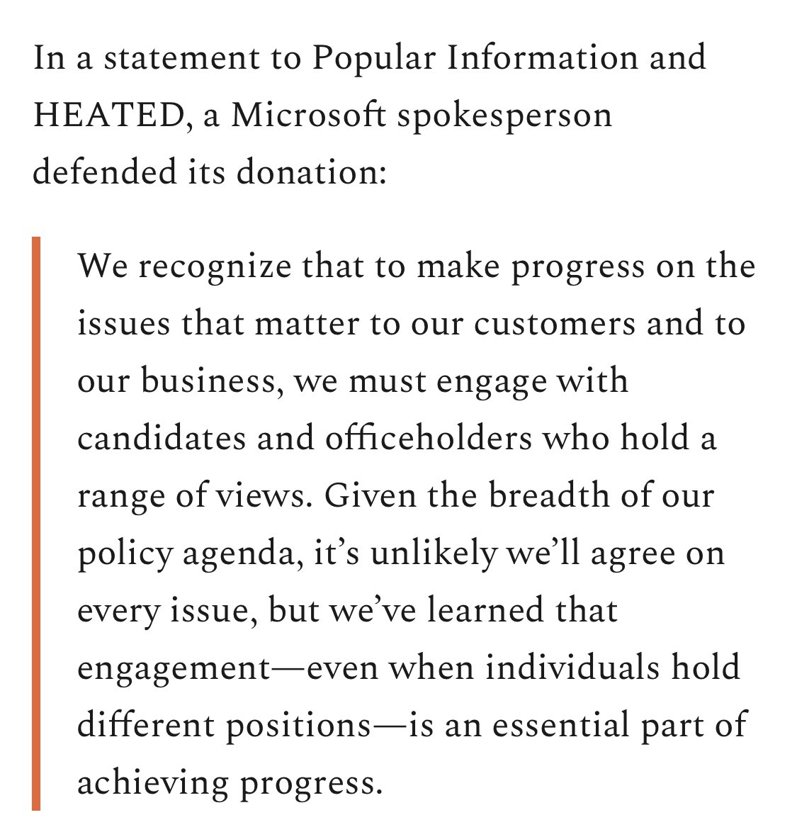 @Microsoft in particular has aggressively marketed itself as a climate champion & called policy action a priority But when asked to justify funding a candidate who would obstruct climate action for years,@Microsoft says climate is just 1 of many issues https://heated.world/p/six-corporations-that-talk-green …pic.twitter.com/1bYJmTCAaH
