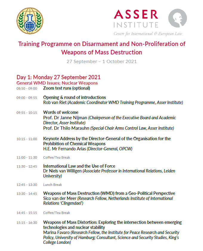 Participants from 27 countries are joining us for the start of our renowned Training on #Disarmament and non-proliferation of weapons of mass destruction (#WMDs) with@OPCW. Today with ao@SicovanderMeer and@mlfavaro.