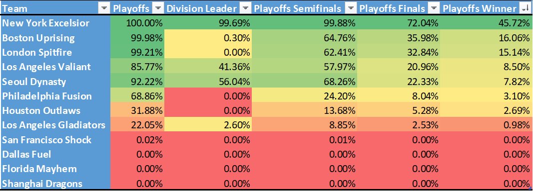 Some simulations I ran on the final quarter of the OWL season, including the stage 4 title matches and the playoffs.pic.twitter.com/hmqGAamnul