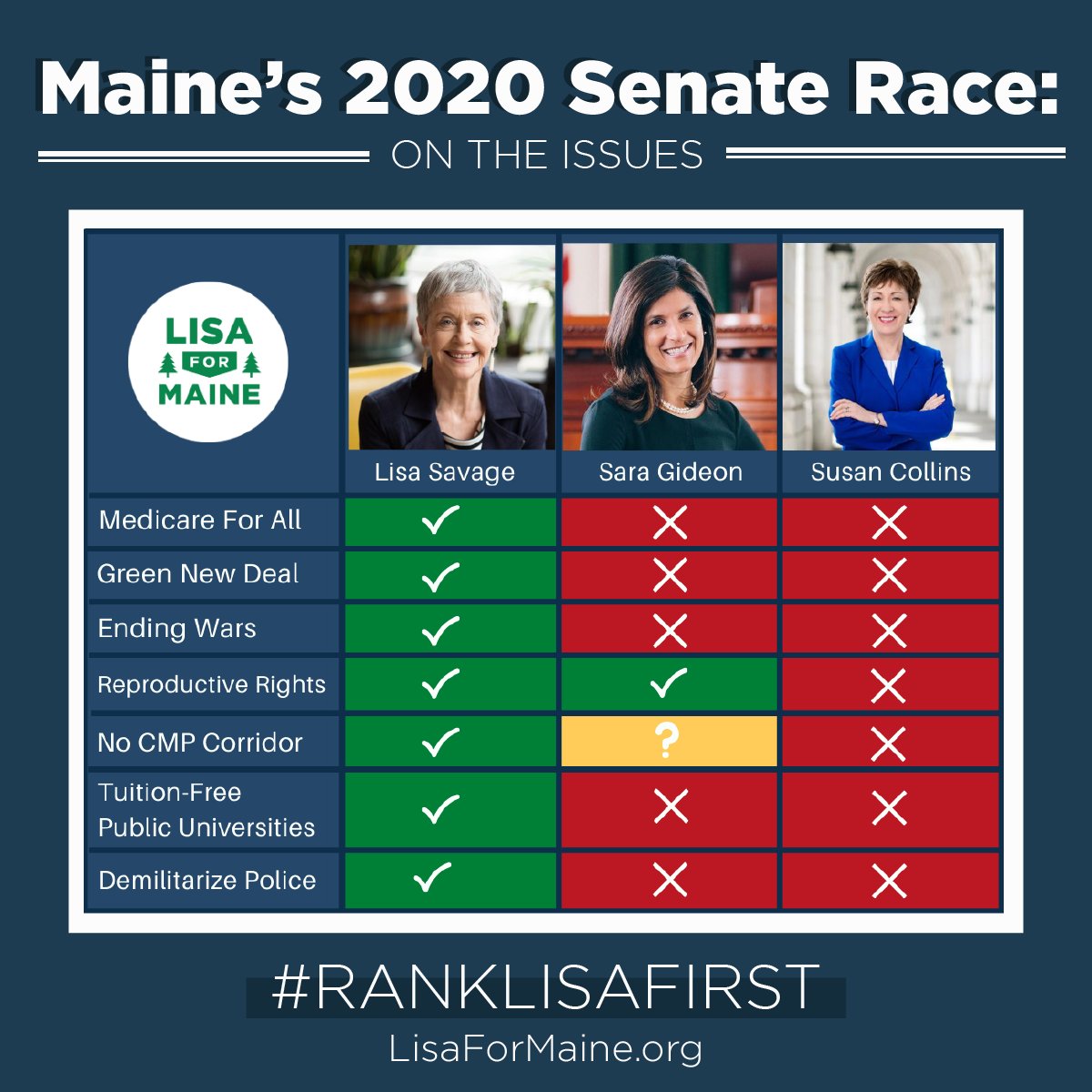 #RankLisaFirst and#SaraSecond? There's no point to rank Sara first, with@LisaForMaine in this race, if you actually care about the planet. Looking forward to the first debate.pic.twitter.com/MvtRUfJDlu