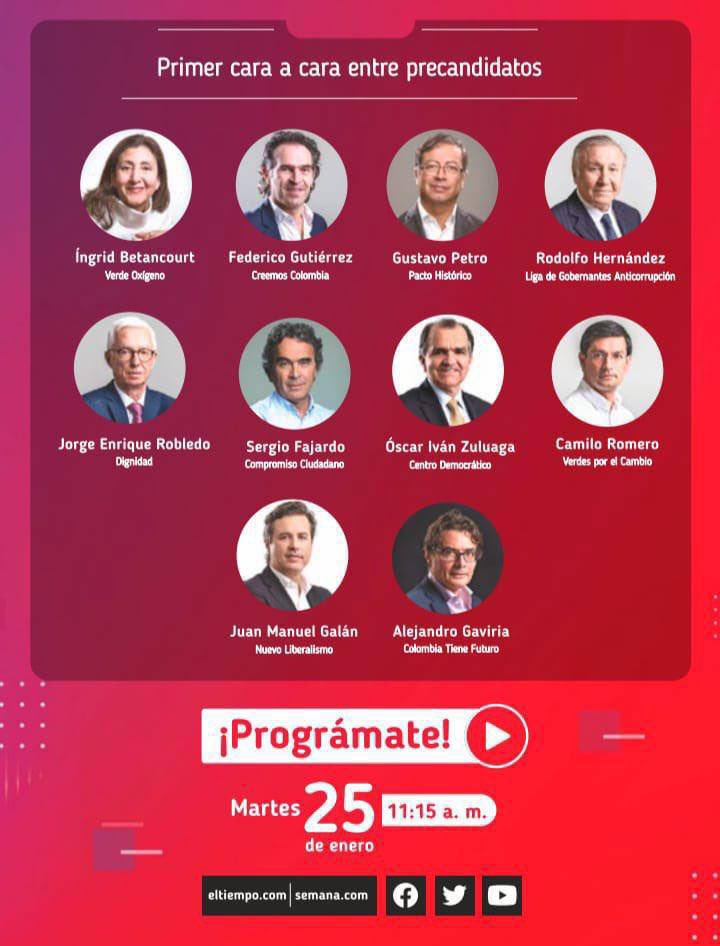Estoy de acuerdo con Francia Márquez y con quienes se quejan de que no haya sido invitada al debate de Semana y El Tiempo. Francia debe participar mañana en el debate y, si es el caso, estoy dispuesto a ceder mi lugar para que ella lo tome.https://twitter.com/cielo_rusinque/status/1485634758239469571 …