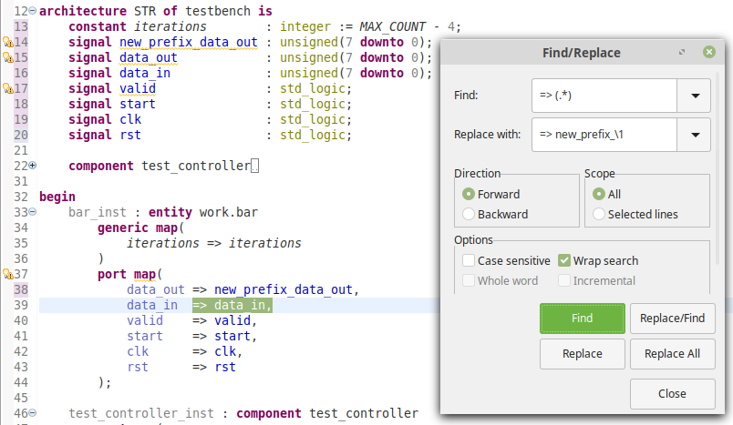 Use regexes in find/replace to quickly prefix signal names in Sigasi Studio https://insights.sigasi.com/tech/prefix-signals-instantiation/ …pic.twitter.com/7d6BOW6F7O