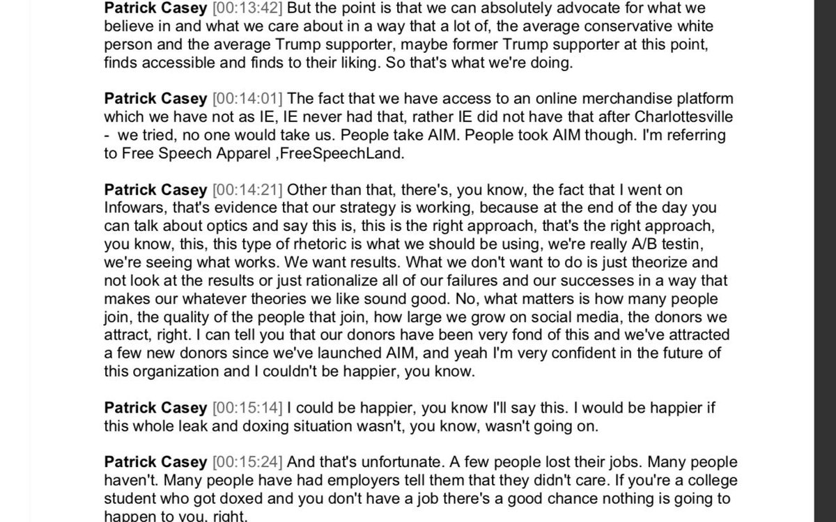 MP3 audio files as well as PDF transcripts of the newly leaked Identity Evropa/American Identity Movement meetings are available for download at the bottom of our new article: https://unicornriot.ninja/2019/americans-of-european-heritage-exclusively-identity-evropa-front-group-meetings-leaked/ …pic.twitter.com/afdXHbDdgE