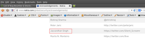 Listed in Nokia security researcher