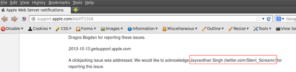 Listed in Apple security researcher