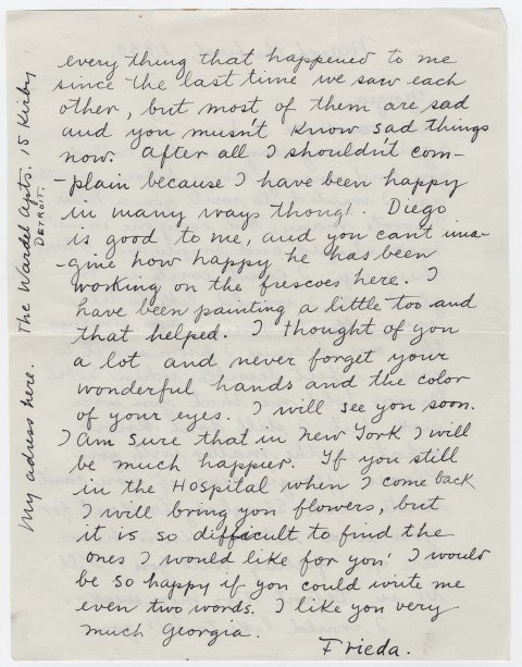 Frida Kahlo's letter to Georgia O'Keeffe after Georgia's nervous breakdown (1933)