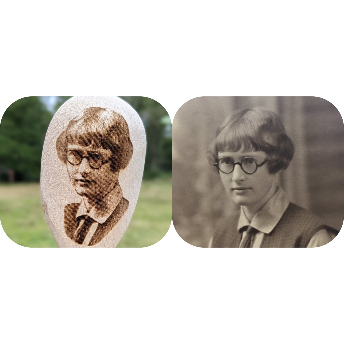 This monochrome photo was all this family had of their beloved "Nannie" I just needed a phone photo of the original to create the spoon on the left.
