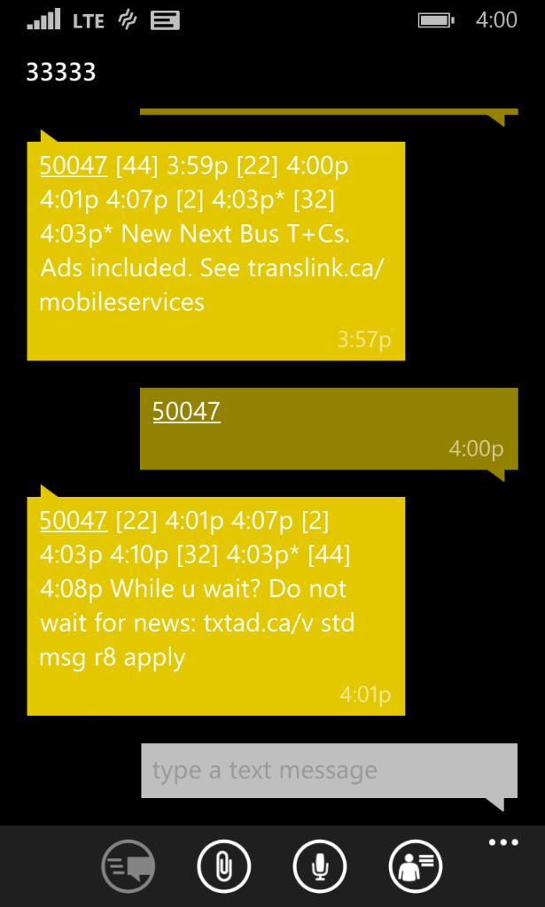 @translink is texting ever accurate? I text to catch the bus but am always left waiting. 3rd day in a rowpic.twitter.com/OoGB5tWhw9