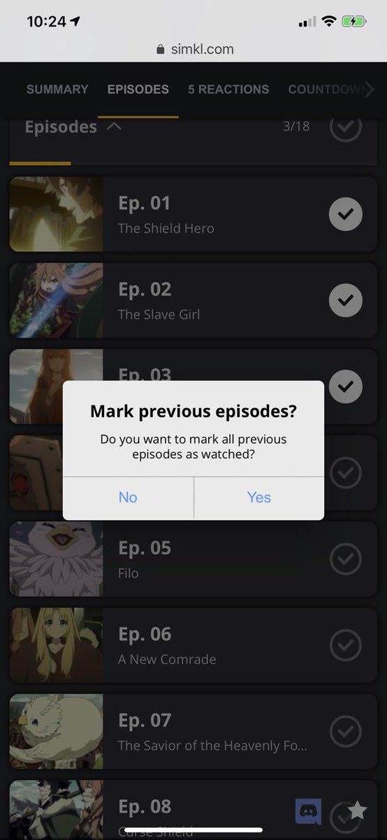 You can now mark the last episode watched in any show in Simkl Lists app, Desktop and Mobile website and if you had any unwatched episodes before, it would now ask if you want to mark those as well. Great way to mark shows after binging.pic.twitter.com/AsdpunaNWW
