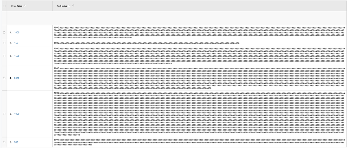 @googleanalytics Custom Dimensions? Nah. Seems to work with at least up to 4000 chars.#measurepic.twitter.com/TJZ2TSkAnf
