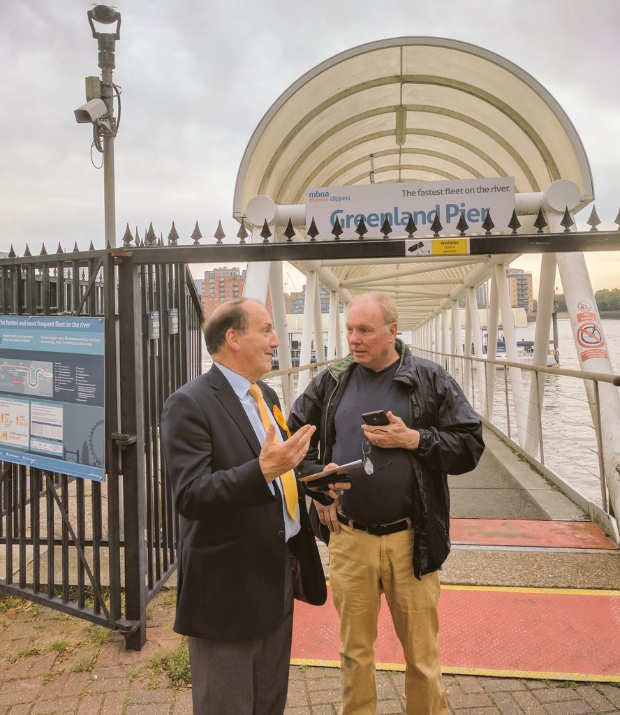 Met commuters by Greenland Pier. Must be said - a nice way to get to work, as will be a foot & cycle bridge to Canary Wharf from near here.pic.twitter.com/289UQs9NAY