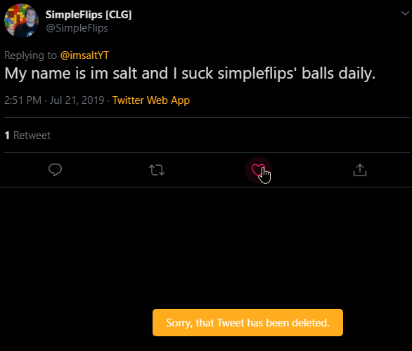 My name is im salt and I suck simpleflips' balls daily.