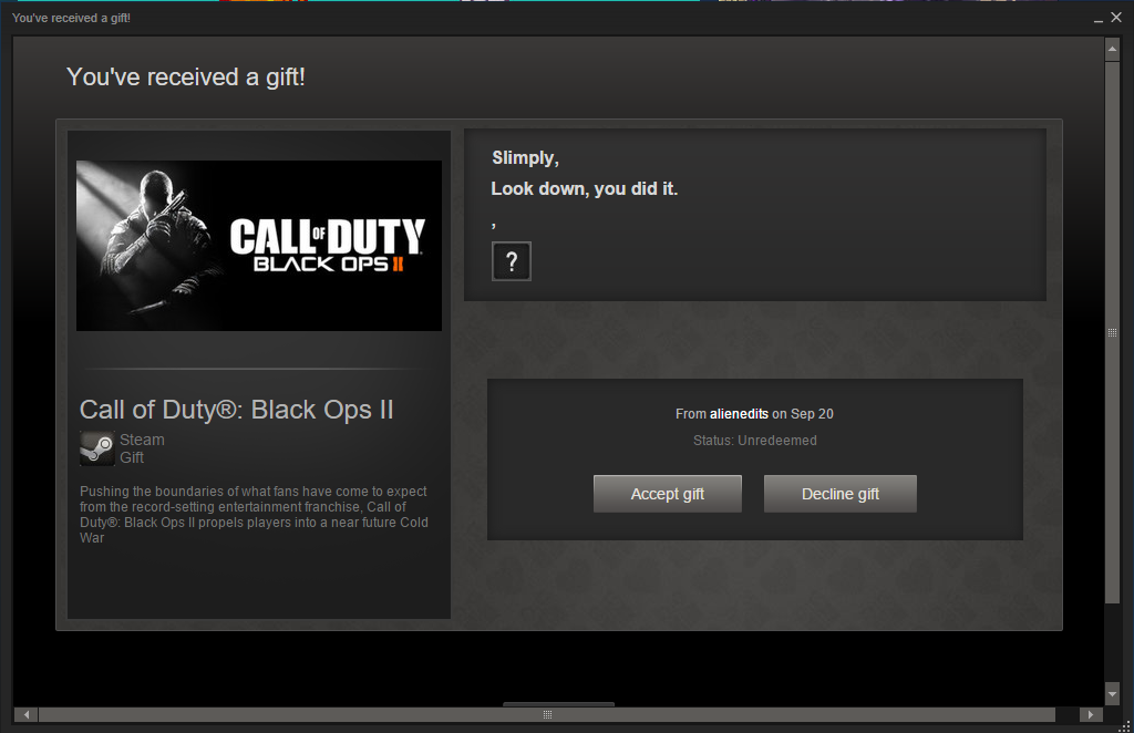 My friend sent me a game on steam a few days ago and I just barely saw it, and I thought steam legit called me simplypic.twitter.com/DsNokvV10J