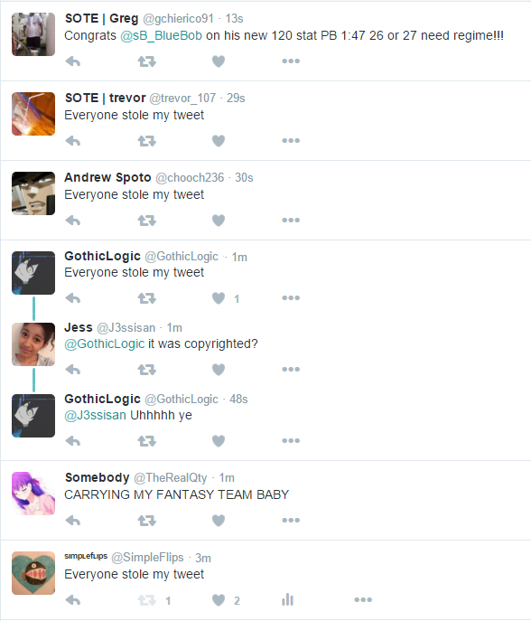 @SimpleFlips everyone stole my tweetThanks. Twitter will use this to make your timeline better. UndoUndo