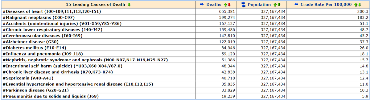 To give you some perspective: the top 3 leading causes of death for 2018 (most recent available data) CV disease 200.3 deaths per 100K Cancer 183.2 deaths per 100K Accidents 51.1 deaths per 100K Where does COVID figure in @ 120 deaths per 100K? /2pic.twitter.com/1BP6vHuJSC