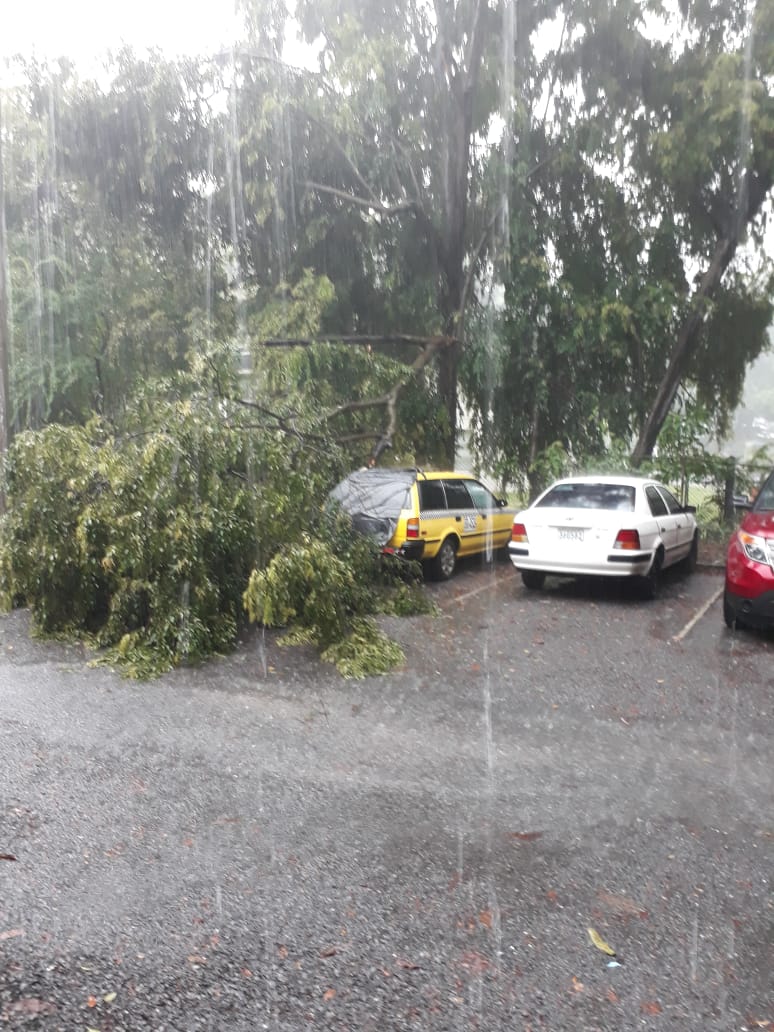 Personal de @Sinaproc_Panama y @BCBRP despejando vía, luego de caer un árbol sobre 2 vehículos en los estacionamientos de la Universidad Marítima Internacional de Panamá, Corregimiento de Ancón. #Precaución. @donderisjapic.twitter.com/eiMxyAogFX
